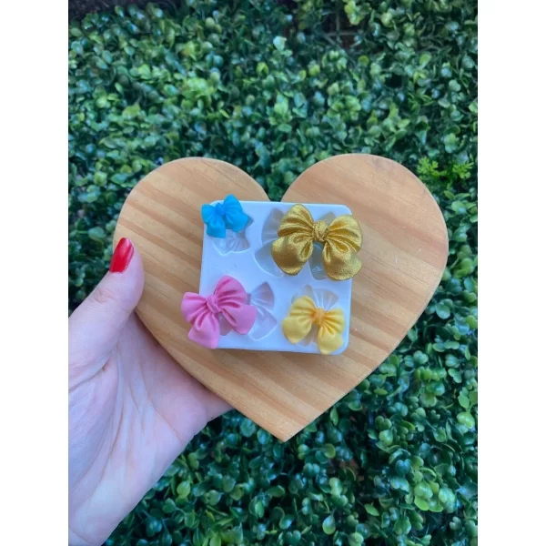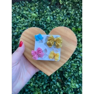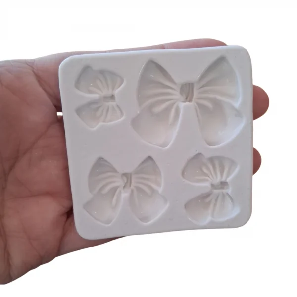 Apresentamos o Molde de Silicone para Confeitaria e Biscuit Quarteto de Laços, um lindo molde para deixar seus clientes encantados. Nossos moldes são a solução perfeita para a confecção de peças encantadoras em uma ampla variedade de materiais, como biscuit, resina, glicerina, parafina,pasta americana, pasta de leite ninho, chocolate etc...